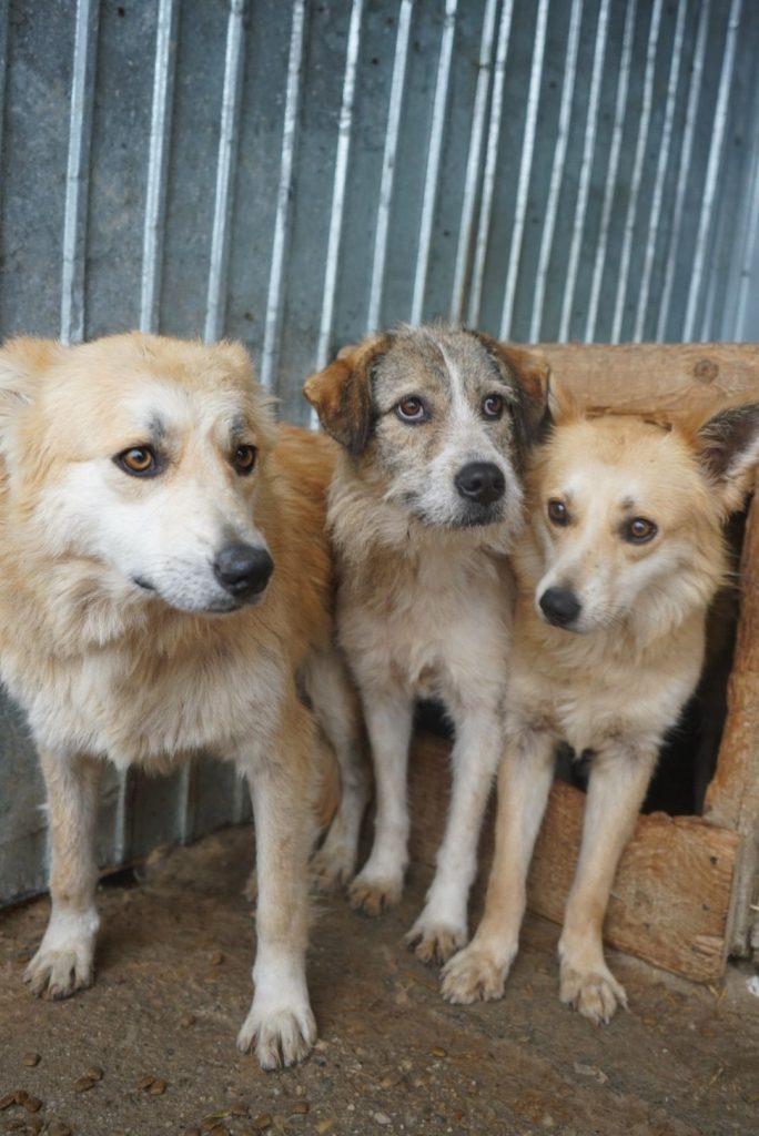 Das sind die Füchse. Seit der Zeit vor Corona leben die Füchse im Shelter. Ein Hund aus dem Wurf durfte einst ausreisen – dann kam die Pandemie. Reisen waren unmöglich, Besuche vor Ort blieben aus, und mit der Zeit zogen sich die Füchse immer mehr in ihre kleine Welt zurück. Heute sind sie scheu und vorsichtig, doch ihr Zusammenhalt ist stark. Eine Vermittlung würde ihnen derzeit mehr Angst als Freude bereiten – sie brauchen Sicherheit und Geduld, bis sie selbst bereit sind.